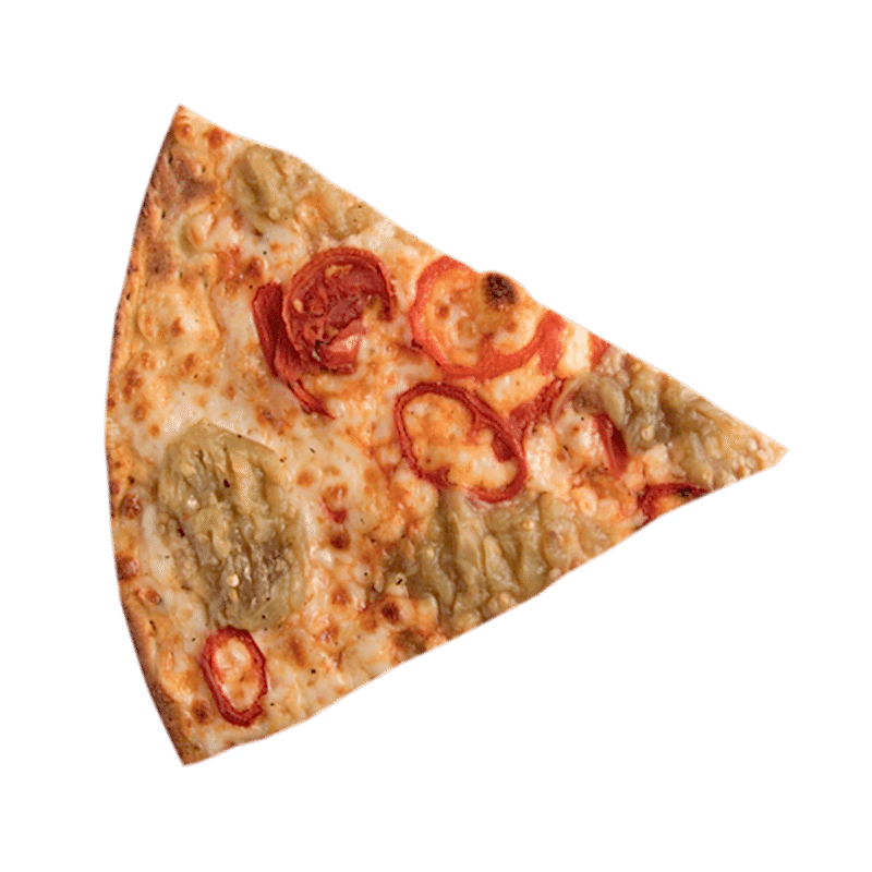 Özel pizza sosu, mozzarella, közlenmiş patlıcan, çeri domates, yeşil biber.